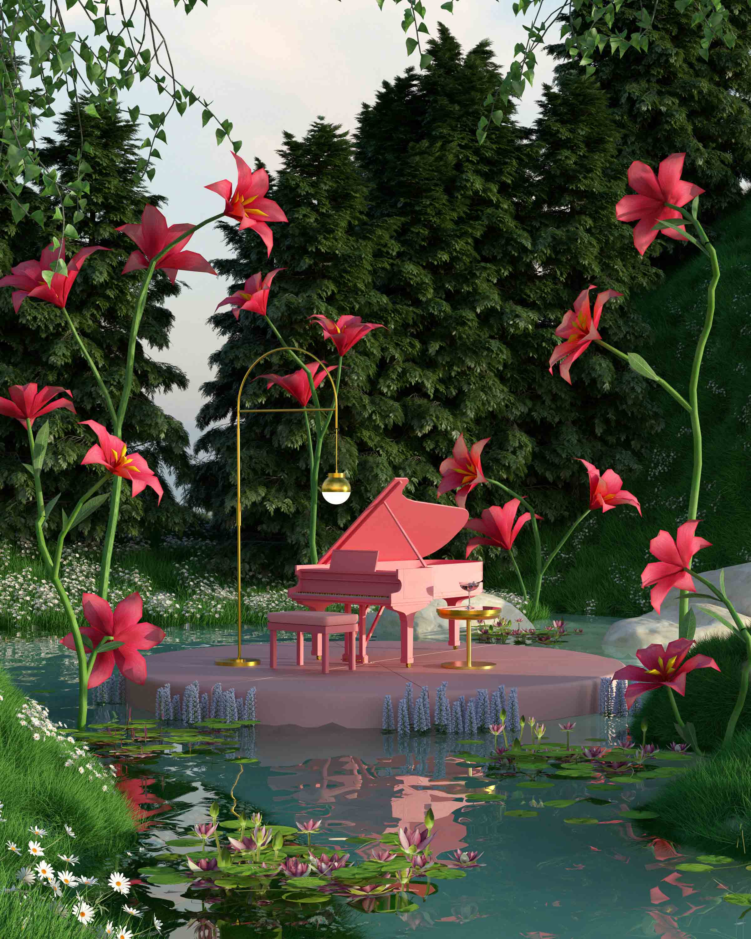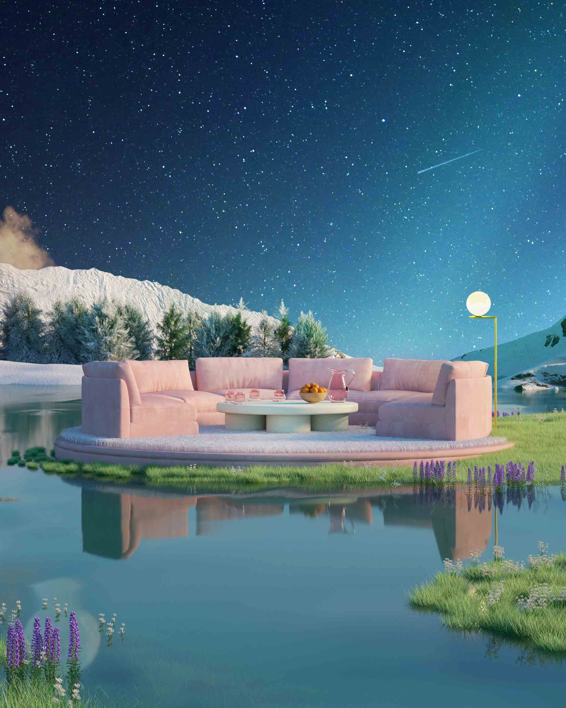 A curated collection of our 3D CGI artworks, each capturing whimsical dreamscapes brought to life through imaginative detail and surreal design.