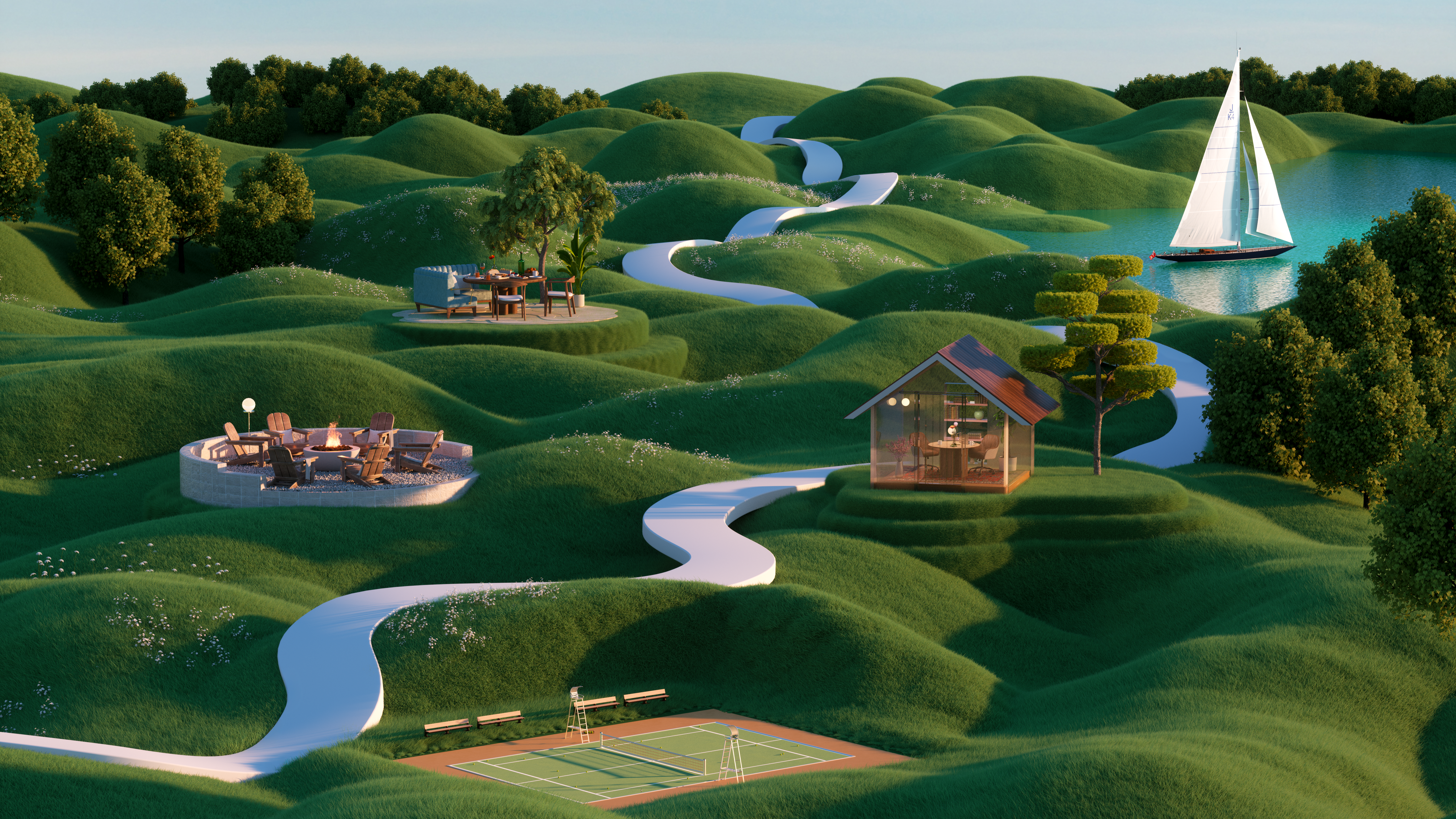 Through a series of richly detailed 3D illustrations, we brought to life a lush, rolling landscape symbolizing the evolving path of multigenerational wealth. Along this journey, joyful family moments unfold, with each vignette capturing a different stage or touchpoint, from adventurous outdoor pursuits to professional milestones to moments of family connection. Each section is designed to work as a standalone illustration while also connecting to the full landscape.