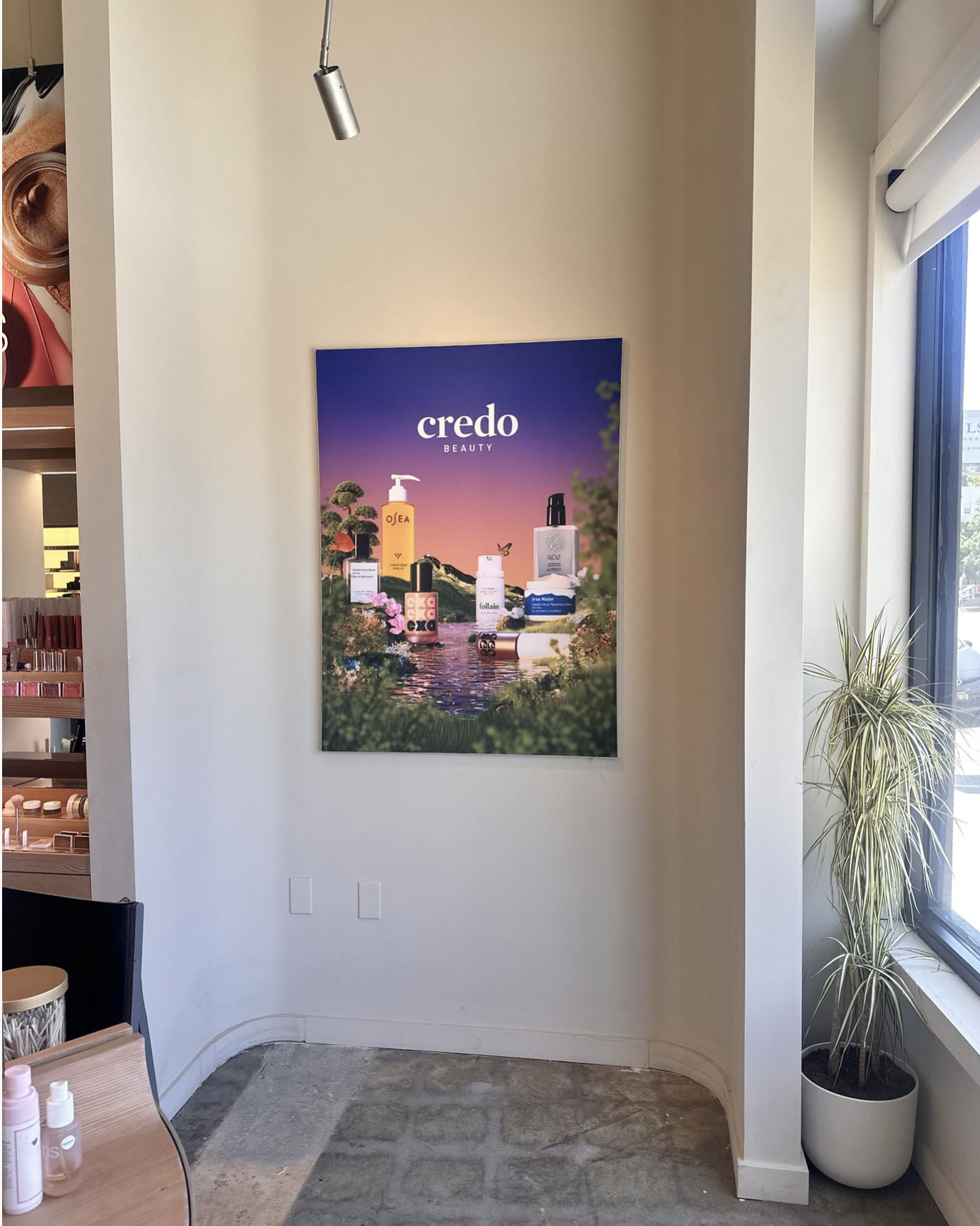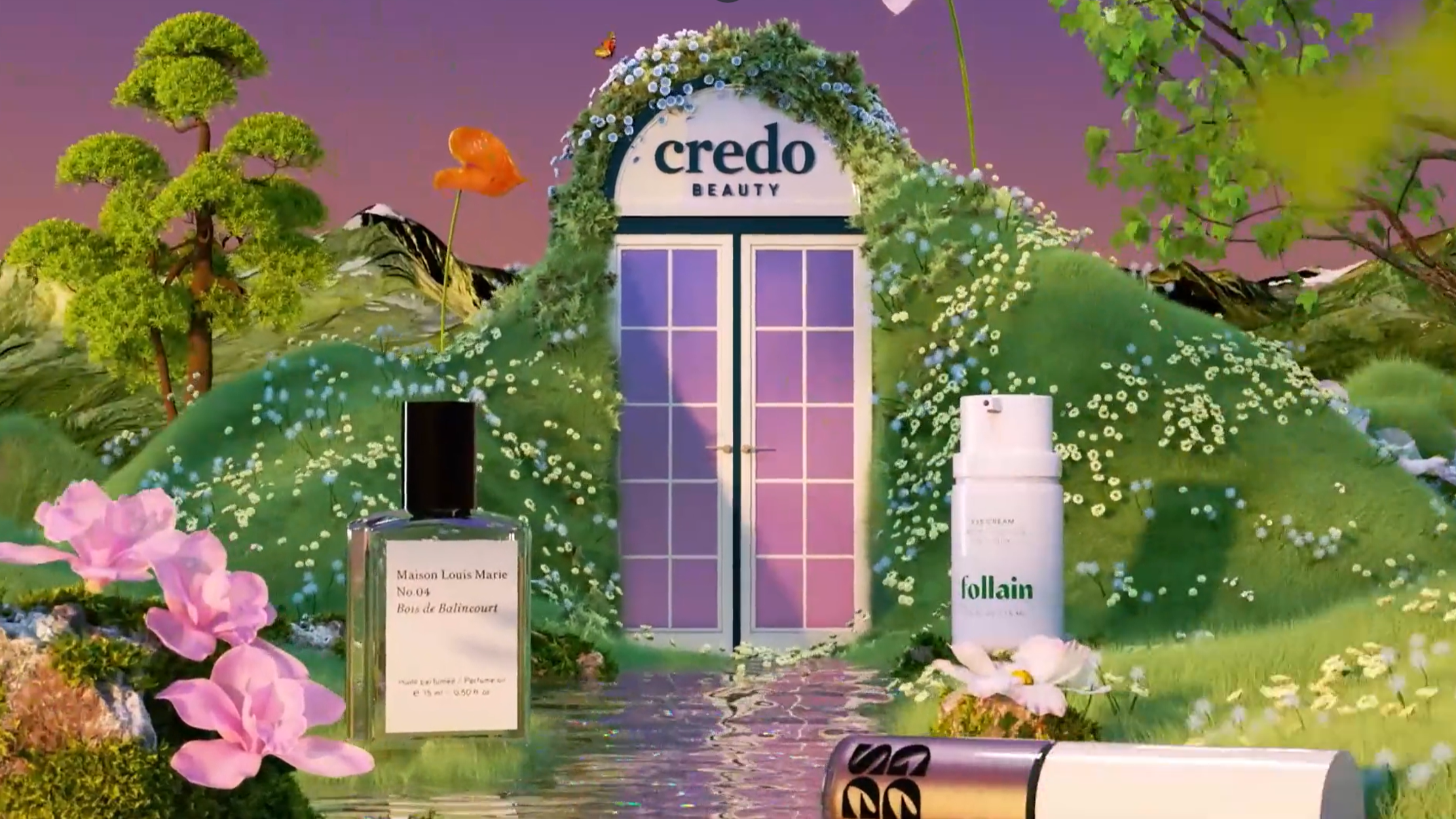 Set against serene natural landscapes - lush green hills dotted with daisies, tranquil lakes, and distant mountains - the series highlighted Credo’s product lines in a setting that evoked purity and calm. In the motion video, the Credo storefront appeared as a surreal structure seamlessly embedded within a riverscape brimming with life. As the viewer drifts along a gentle river leading towards the store, two doors slowly open, inviting them into a world where beauty and nature coexist in perfect harmony.
