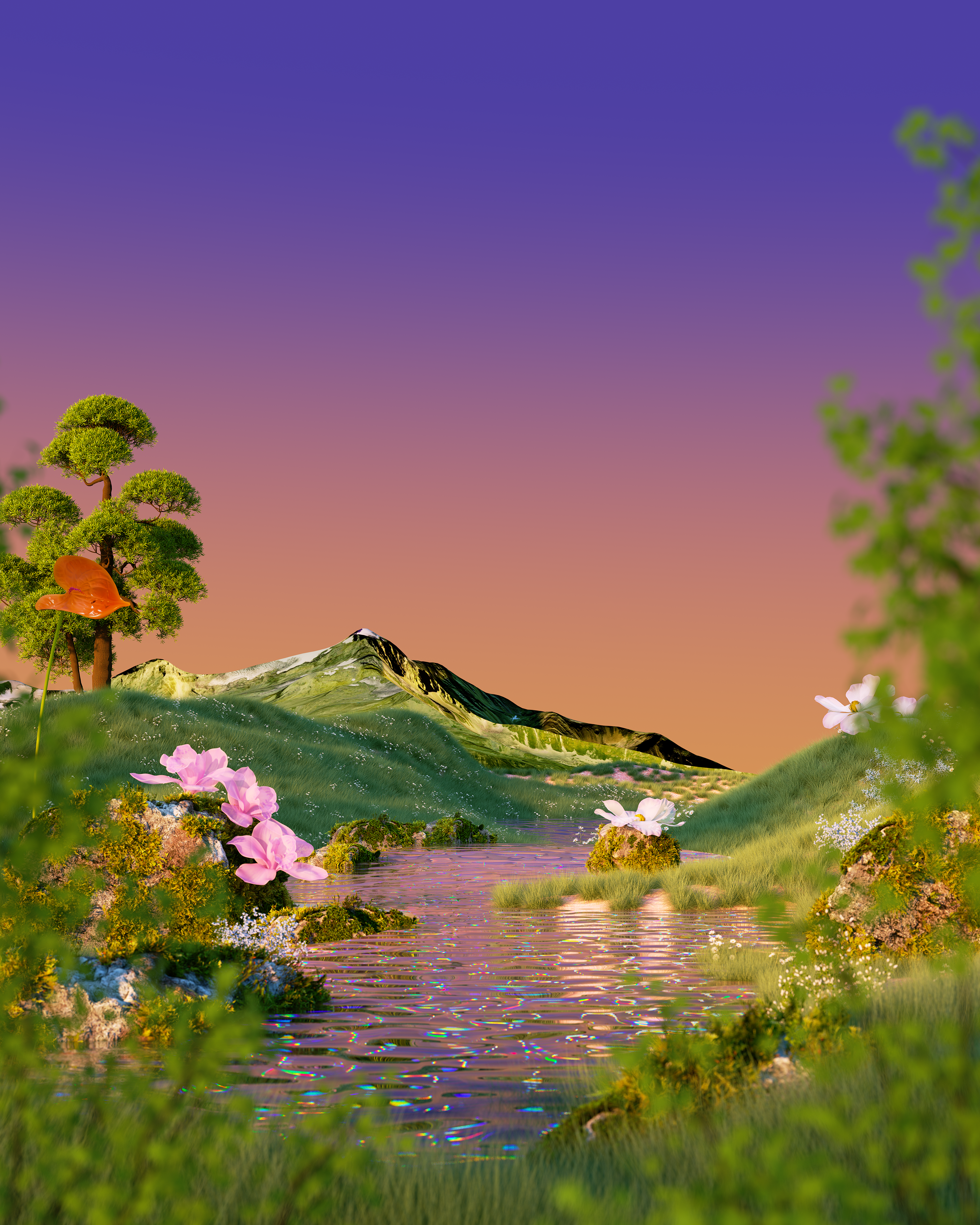 The work introduces a series of 3D environments that bring together natural elements and product storytelling, forming a calm, immersive visual language across digital, print, and retail.