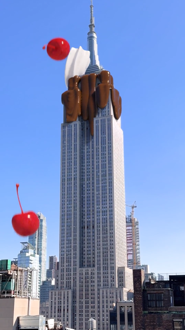 Layers of rich chocolate, whipped cream, cherries, and nuts envelop the city’s most iconic landmarks—reimagining them as the brand’s signature sundae.