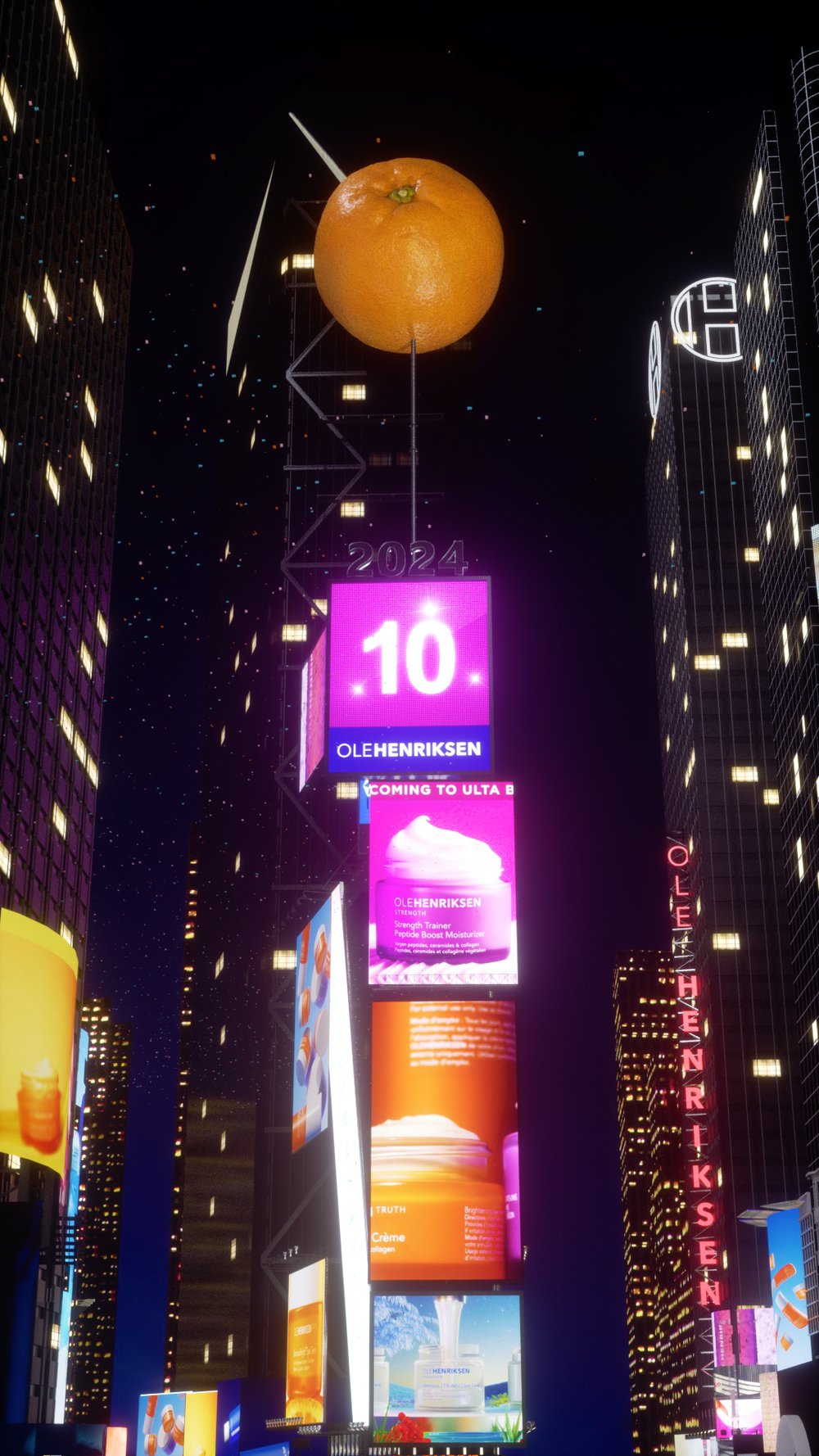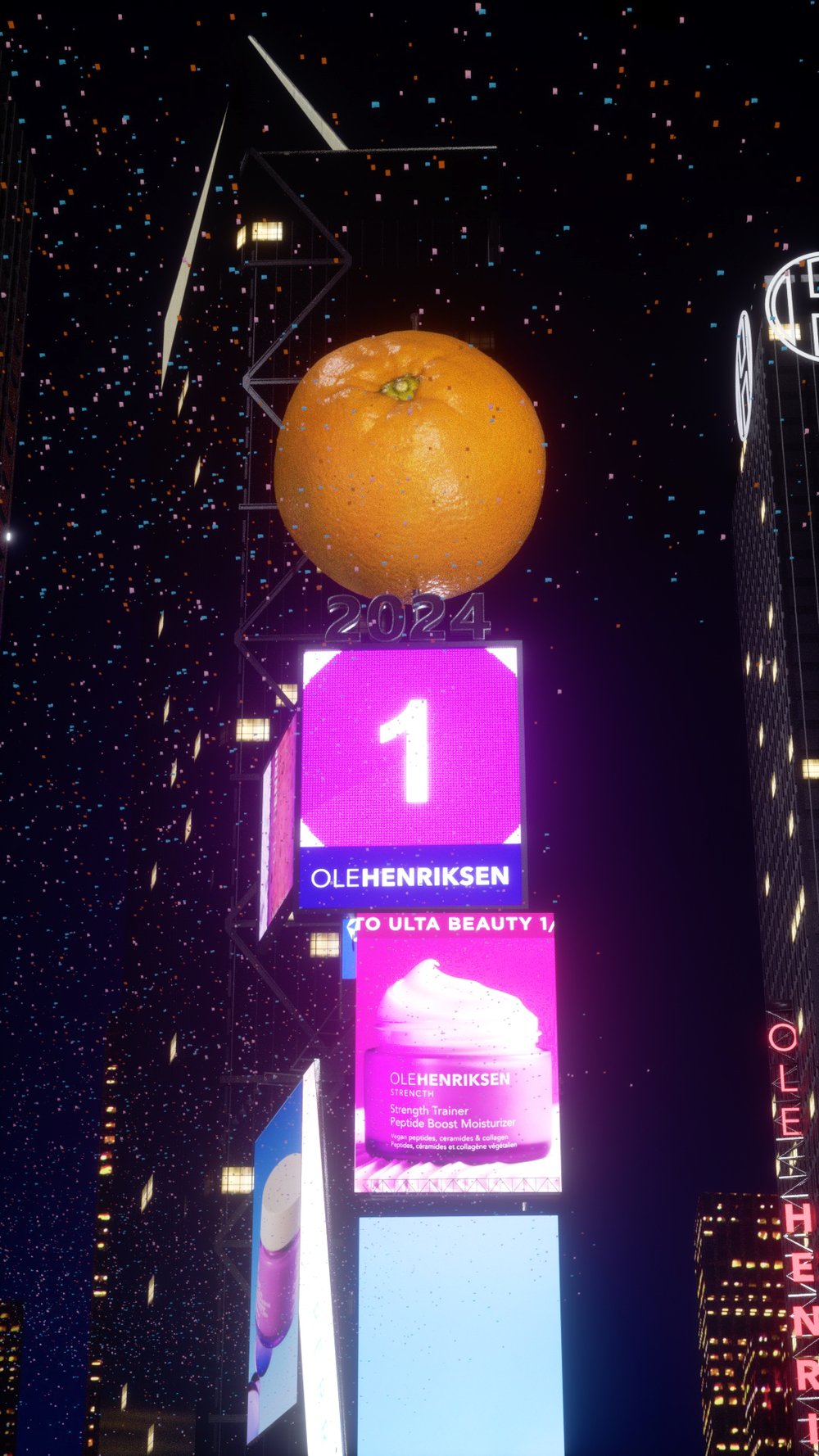 To celebrate Ole Henriksen’s launch into Ulta Beauty, we’ve created a two-part series of videos to unveil the exciting news. The first piece was posted on the brand’s social channels on New Year’s Eve, taking advantage of the ‘ball drop’ event in Time Square, New York. A CGI Ole Henriksen orange makes its grand entrance as we reach the countdown, capturing the essence of the brand’s takeover in this iconic location.