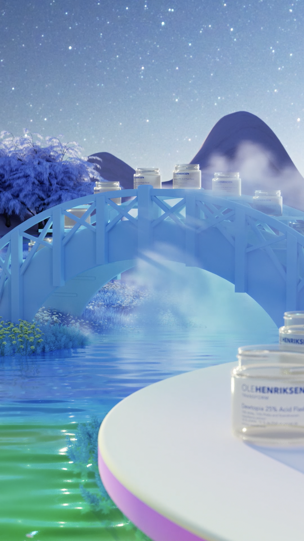 We were given the task to create two distinct dreamscape videos revealing Ole Henriksen’s newest face mask, Dewtopia 25% Acid Flash Facial, and the Strength Trainer Peptide moisturizer.